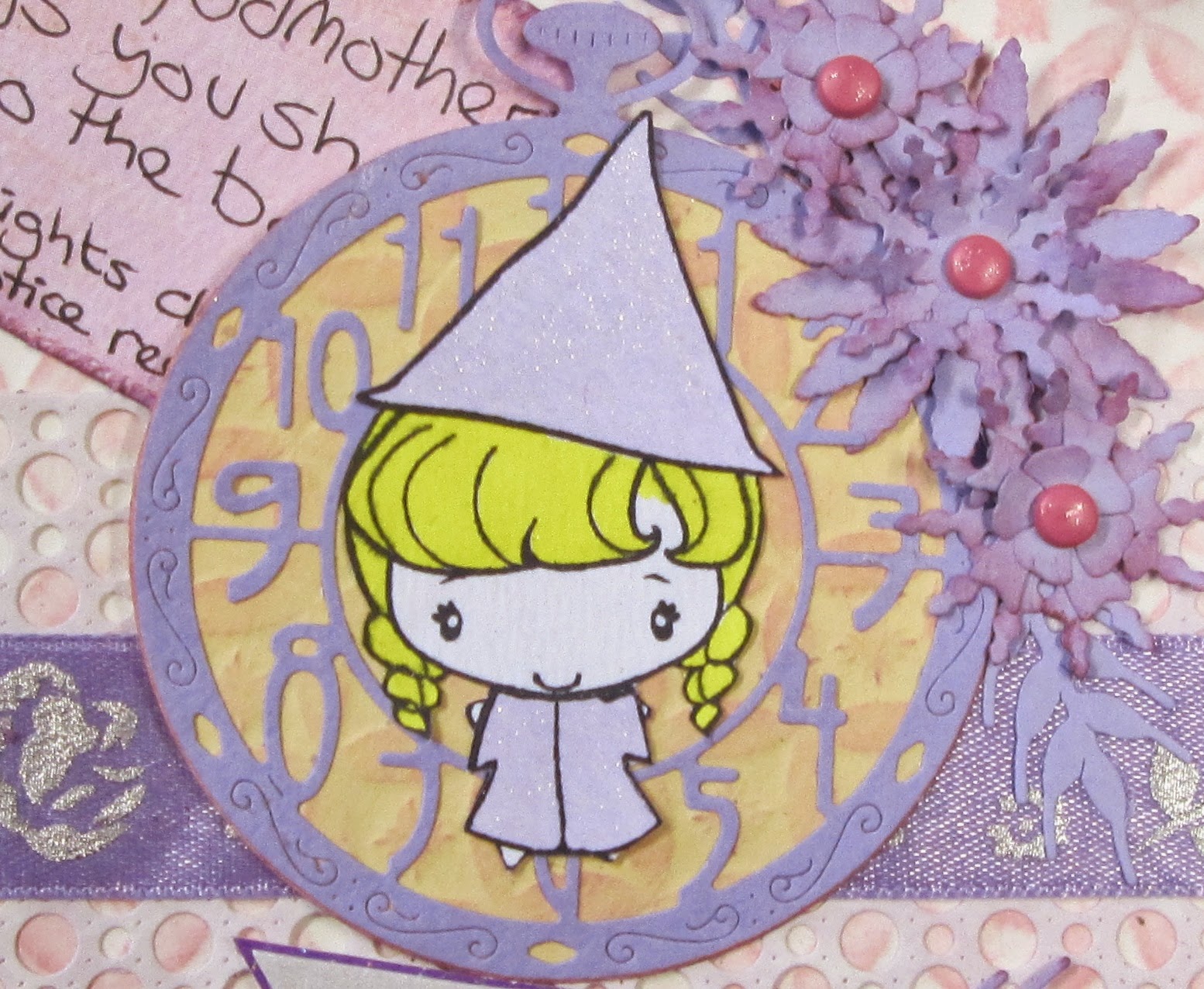 I've used all the different design papers to cut the moths, dragonflies and for stamping the sentiment. The moth and sentiment are from PaperArtsy USNT4. The dragonflies are stamped with modern girl from LPC022 and stuck to both sides of three layers of die cut cardboard. The sentiment was mounted both sides on PA heavy greyboard. The chain was from a PA monster box.