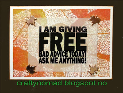 Hello Nomad friends. I am over on the Lost Coast Portal to Creativity today with a quick and fun card featuring words and leaves. Our challenge at the moment is Sentiment in Focus and we want to see at least 5 words on your stamped masterpiece. Since it's autumn and the leaves are swirling around today in the hefty breeze I decided to use one of my favourite leaf stamps, Lost Coast Designs Leaves Background.