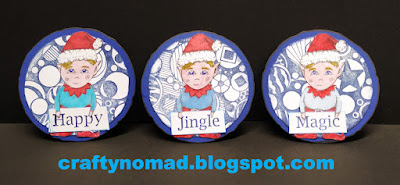 I've made some artist trading coins with Carmen's Veranda Elf and Lost Coast Designs PMC Circle Frame background. Words selected from the Misc. Words set. I cut my coins with studio light dies.